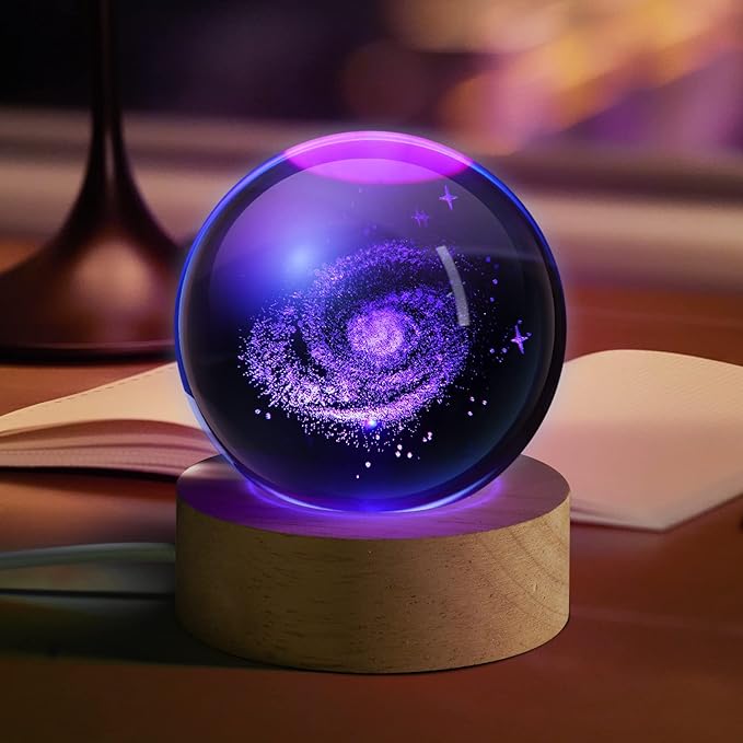 - 🔮 Magical Lights: Galaxy glass ball comes with LED lighting base.This galaxy ornament seems to be a magical and pocket edition galaxy in the room.